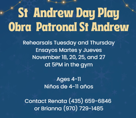 ¡Bienvenido a Saint Andrew! Nos alegra que estés aquí y te invitamos a unirte a nosotros. Desplázate hacia abajo para ver el horario habitual de la parroquia y todos los eventos especiales.