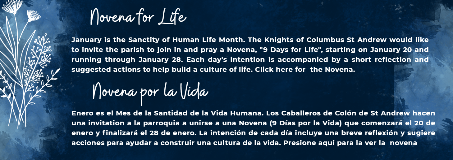 ¡Bienvenido a Saint Andrew! Nos alegra que estés aquí y te invitamos a unirte a nosotros. Desplázate hacia abajo para ver el horario habitual de la parroquia y todos los eventos especiales.